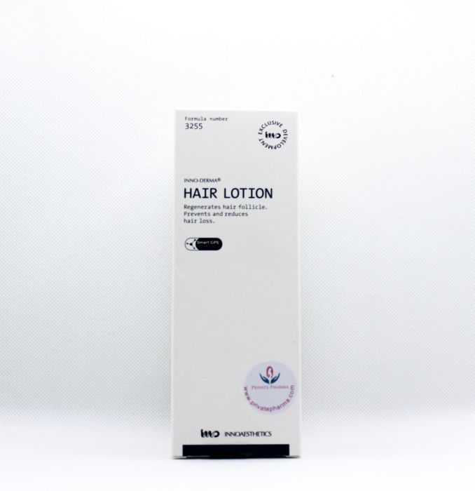 INNO-DERMA Hair Lotion effectively slows down or stops hair fall completely by stimulating blood flow and nourishing the scalp to strengthen the hair and promote growth, thus improving hair volume and density. Moreover, this lotion regenerates the hair follicles and reinitiates the hair cycle, extending the Anagen phase (growth) and postponing inactive phases (Catagen and Telogen). The result is a revolutionary hair product, formulated with an exclusive Minoxidil-like complex which repairs and restores the hair follicles.