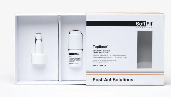 Topilase® is a topical care that safely shapes and reduces the unwanted presence of hyaluronic acid to adjust the skin’s ideal hyaluronic acid level. Topilase® is strictly reserved for health professionals registered with the order of physicians. A protocol for every form of irregularity In order to use Topilase® effectively and achieve the desired results, there is a protocol for each situation. Small corrections or surface irregularities: Apply a thin layer of Topilase® to the area and massage it in. The whole procedure is done in 1 or 2 sessions depending on the practitioner. Excess volume in the cheekbones: Apply a layer of Topilase® and massage to sculpt and refine the result. Pockets with bluish highlights under the eyes: Apply two successive thin layers of Topilase® on the lower eyelid. The whole process requires between 2 and 4 sessions. Overly puffy lips: Apply a dose adjusted to the volume and type of product injected. The whole protocol can be done between 1 to 3 sessions. Topilase®: a safer alternative to hyaluronidase Before the creation of Topilase®, the only treatment on the market to deal with the serious complications of hyaluronic acid injections was injectable hyaluronidase, an enzyme that induces the accelerated disintegration of hyaluronic acid and which is authorized in specific cases and within a hyper-regulated framework. The latter has only been authorized since 2017 by the French High Authority of Health and is only reserved for surgeons, ophthalmologists and dermatologists. Unlike Topilase®, hyaluronidase is of bovine, ovine, bacterial or testicular origin. Despite its considerable effectiveness, some patients experience an allergic reaction triggered by ingredients of animal origin. In addition, sometimes doctors and patients notice a softening of the skin leading to skin laxity, and significant dehydration with a slow recovery that extends over one or two months. Created to avoid these inconveniences, Topilase® is a topical cream with a patented formula based on an enzymatic complex of lipase, protease and hyaluronidase in addition to natural ingredients known for their soothing and repairing effects: aloe vera, lavender, hydrangea, myrrh and cistus. The ideal formulation to effectively reduce unsightly surface volumes.